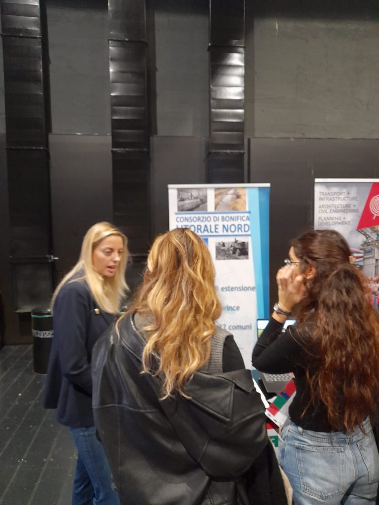 In un apposito desk, provvisto di supporti multimediali e materiale informativo dell'Ente, sono state presenti due delle nuove ingegnere del Consorzio di Bonifica, Arianna Manoni e Sara Bartoletta. Obiettivo dell'iniziativa è stato l’incontro con gli studenti laureandi e neolaureati in Ingegneria e catalizzare così eventuale interesse per pianificare anche degli stage con l’obiettivo di presentare le attività dell’Ente e valutare potenziali profili di interesse per future collaborazioni.